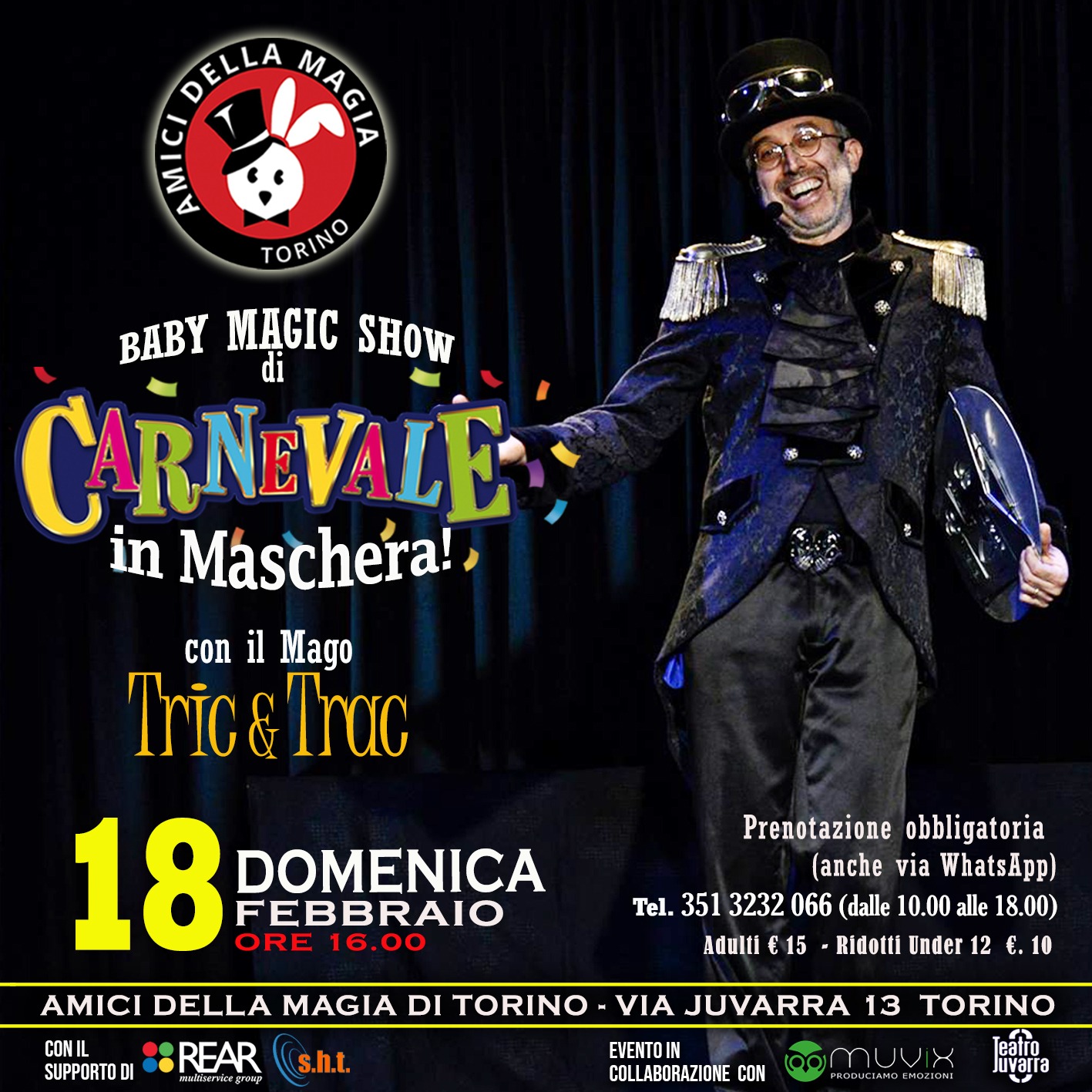 Domenica 18 febbraio alle 16 un nuovo appuntamento con la magia per i più piccoli che potranno divertirsi con il Magic Show del Mago Tric & Trac (Mario Fasson) e partecipare a una divertente festa in maschera indossando il proprio costume e festeggiando con le immancabili bugie di Carnevale!