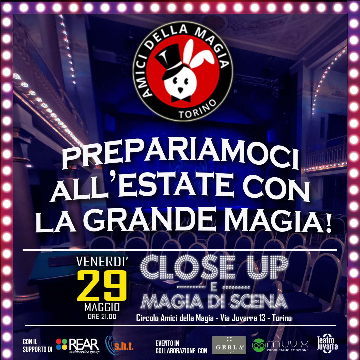 Venerdì 29 maggio 2026 alle 21.00 una speciale serata al Teatro Juvarra con lo spettacolo di Close Up e Magia da Scena il formato unico che caratterizza il nostro circolo torinese.