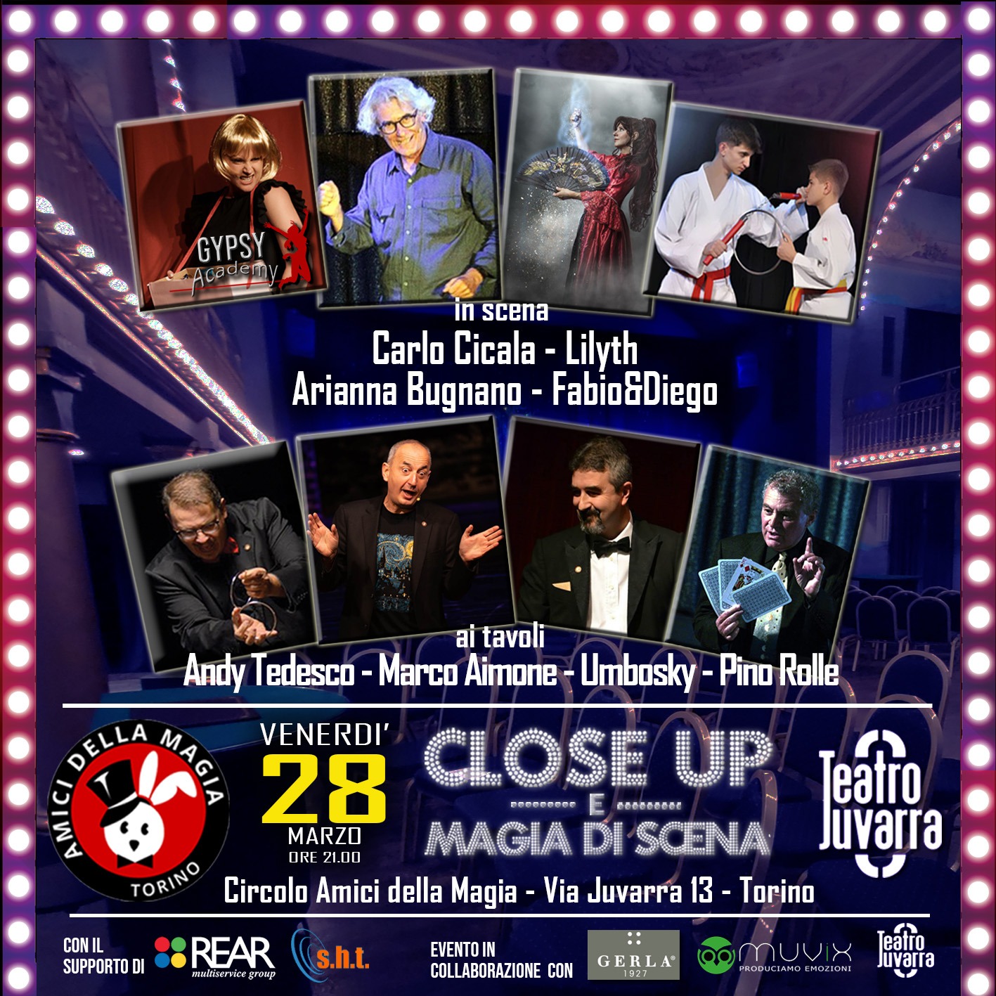 Venerdì 28 marzo alle 21 una speciale serata al Teatro Juvarra con lo spettacolo di Close Up e Magia da Scena il formato unico che caratterizza il circolo torinese.